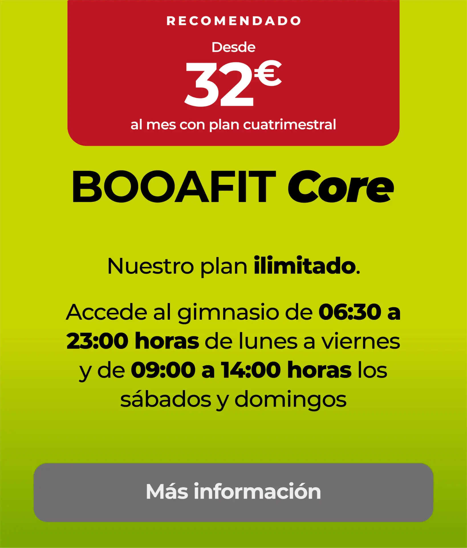 TARIFA BOOAFIT CORE- Tarifa especial Weekend